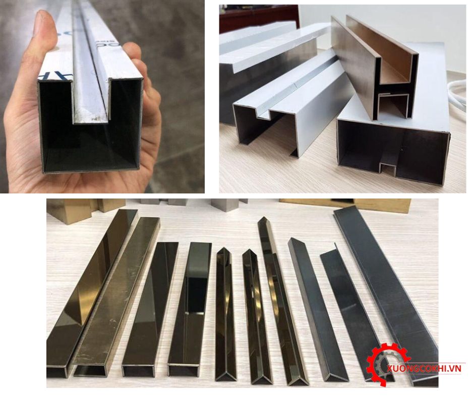 Cắt, uốn, chấn, hàn và xử lý bề mặt đạt chuẩn xuất khẩu. Sản phẩm dùng cho: ốp thang máy, vách tường, trần, quầy lễ tân, cửa và lan can inox.